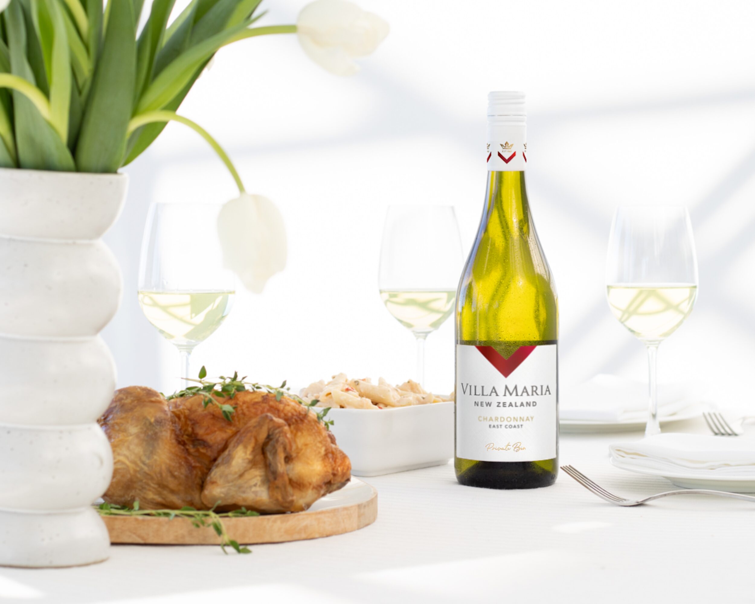 With its crispy skin and succulent meat this roast chicken recipe is perfect for Sunday lunch or your next dinner party. The savoury richness of the chicken enhances the delicate fruitiness of our Private Bin Chardonnay, bringing a timeless classic to your table.